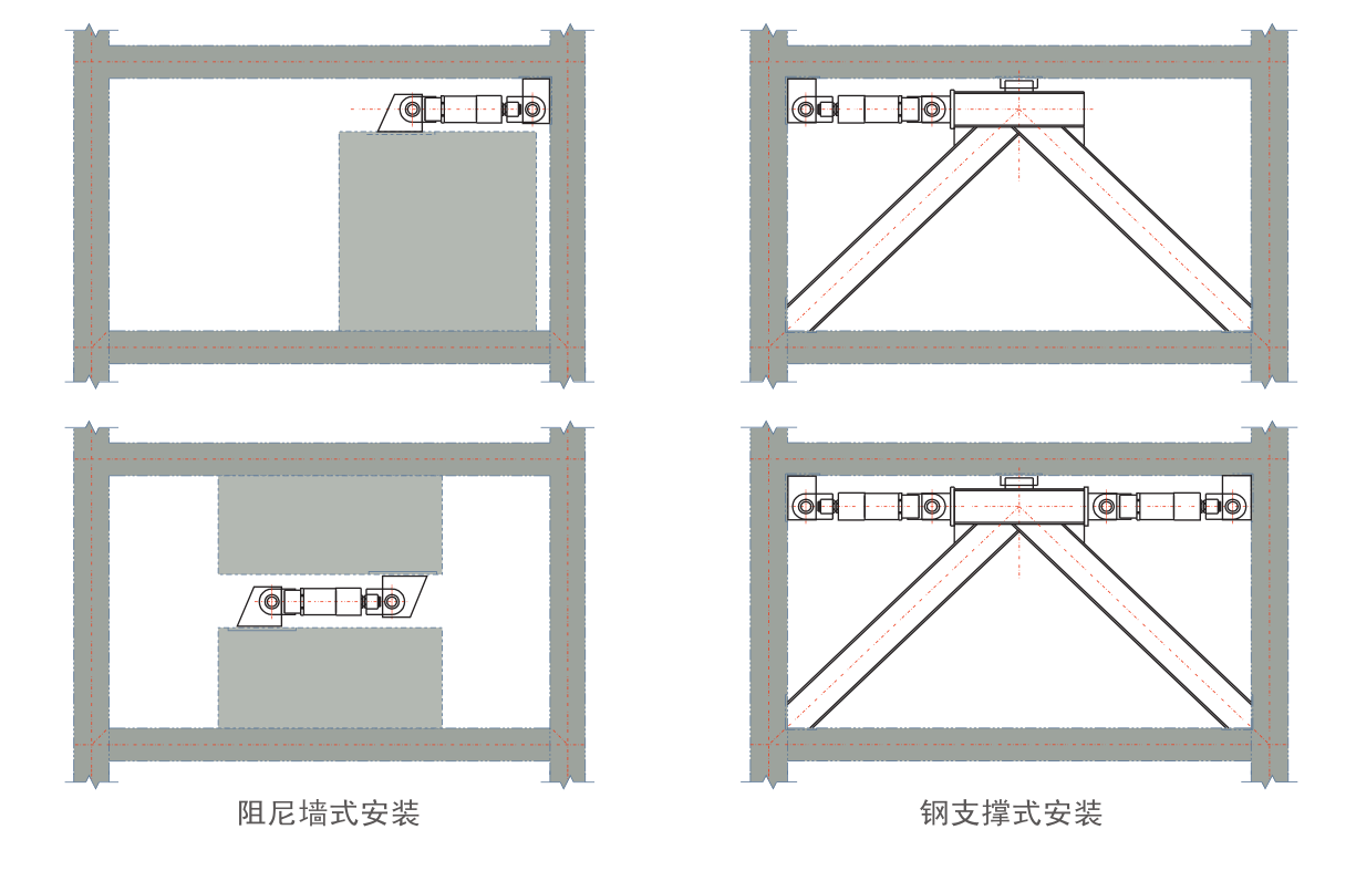 當外部激勵(地震或風振)傳遞到結構中時,結構產生變形并帶動阻尼器運動。在活塞兩端形成壓力差,介質從阻尼結構中通過,從而產生阻尼力并實現能量轉變(機械能轉化為熱能),達到減小結構振動反應的目的。